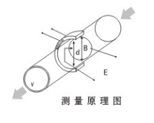 測量流量時,導電性液體以流速V流過垂直于流動方向的磁場,導電性液體的流動感應出一個與平均流速成正比的電壓,其感應電壓信號通過與液體直接接觸的電極檢出。對于同一流量計S、B、d為常量,所以流量與感應電動勢E(或流速V)的大小成正比。