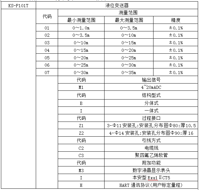 KS-P101T系列液位變送器選用高精度、高穩定性擴散硅壓力傳感組件,通過高可靠性的放大電路及精密溫度補償,將被測液體的液位信號轉換成4~20mADC標準電信號。高質量的傳感器、精湛的封裝技術以及完善的裝配工藝確保了該產品的優異質量和最佳性能。